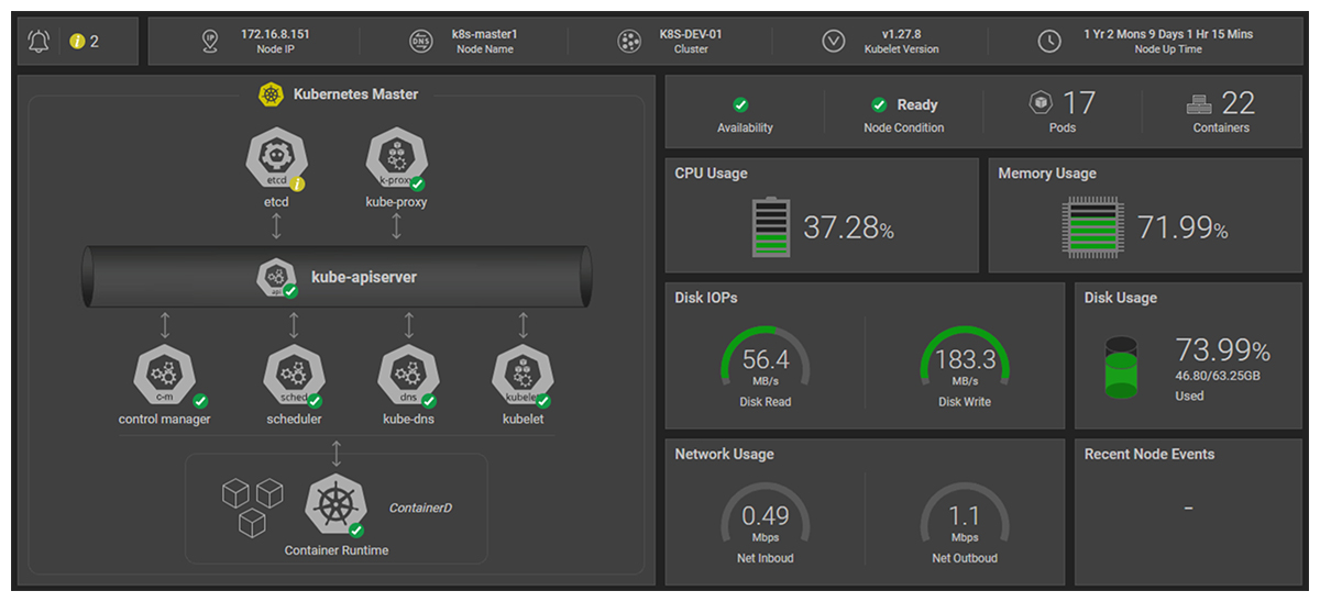 Figure 1: eG Enterprise includes integrated support for modern architectures and containerization technologies such as Kubernetes - Intelligent Correlation: One of eG Enterprise’s standout features is its ability to correlate data from various components and layers. The AI-powered monitoring tool automatically identifies relationships between different components, helping you uncover root causes of performance issues across complex systems.