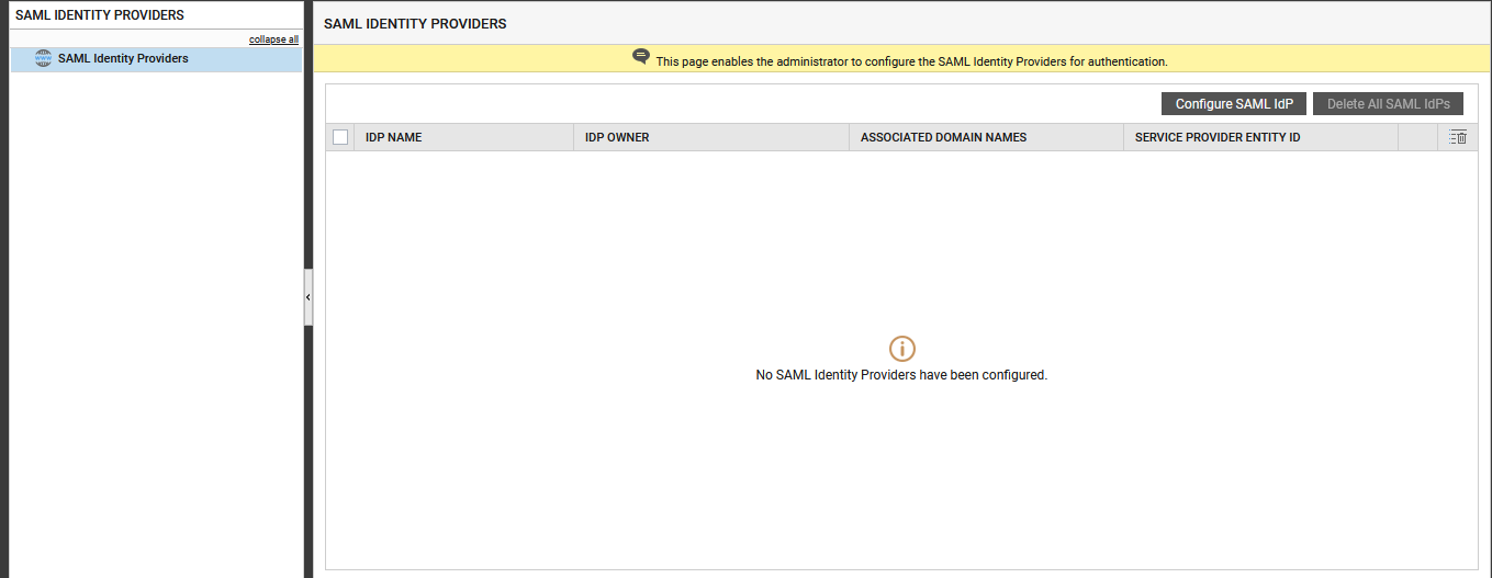 Figure 34 : The page that appears once the basic SAML configuration is saved