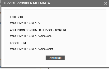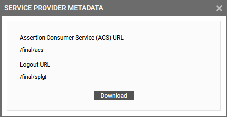 icon corresponding to it in Figure 42. Doing so will invoke Figure 43, displaying the Logout URL and ACS URL of the said IdP.