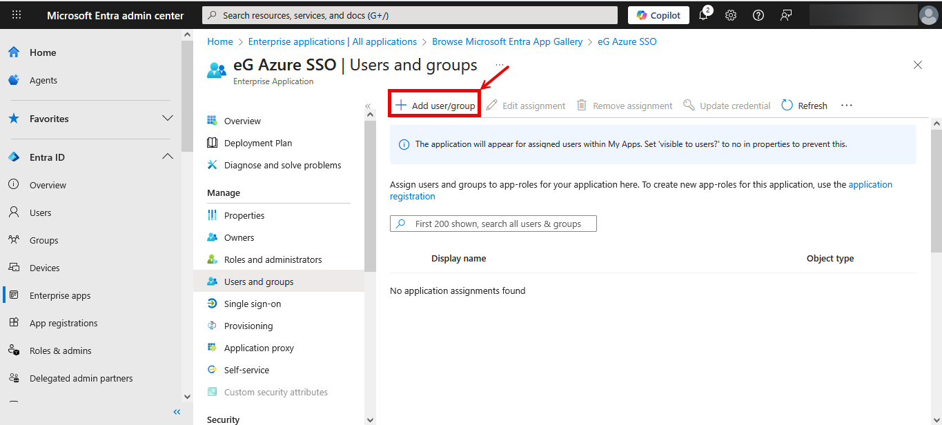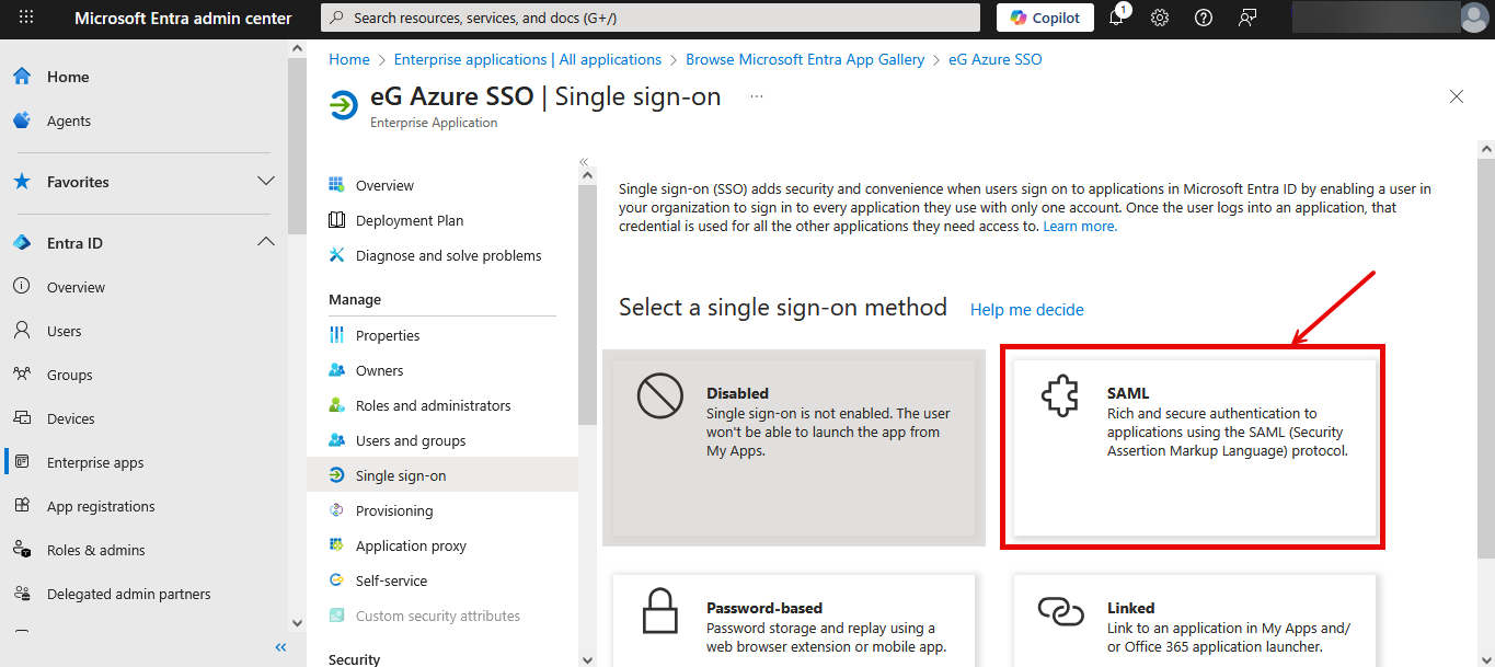 Configuring eG Enterprise as a Service Provider in Microsoft Entra