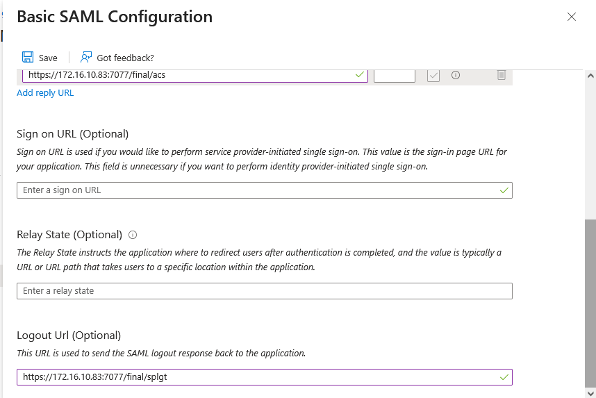 Then, click on the Add reply URL link and specify the Reply URL (Assertion Consumer Service URL) in the text area that appears. To configure an IdP to work with an SP, an Assertion Consumer Service (ACS) URL - i.e., Reply URL - has to be specified. The ACS URL is an endpoint on the service provider where the identity provider will redirect to with its authentication response. This endpoint should be an HTTPS endpoint because it will be used to transfer Personally Identifiable Information (PII).