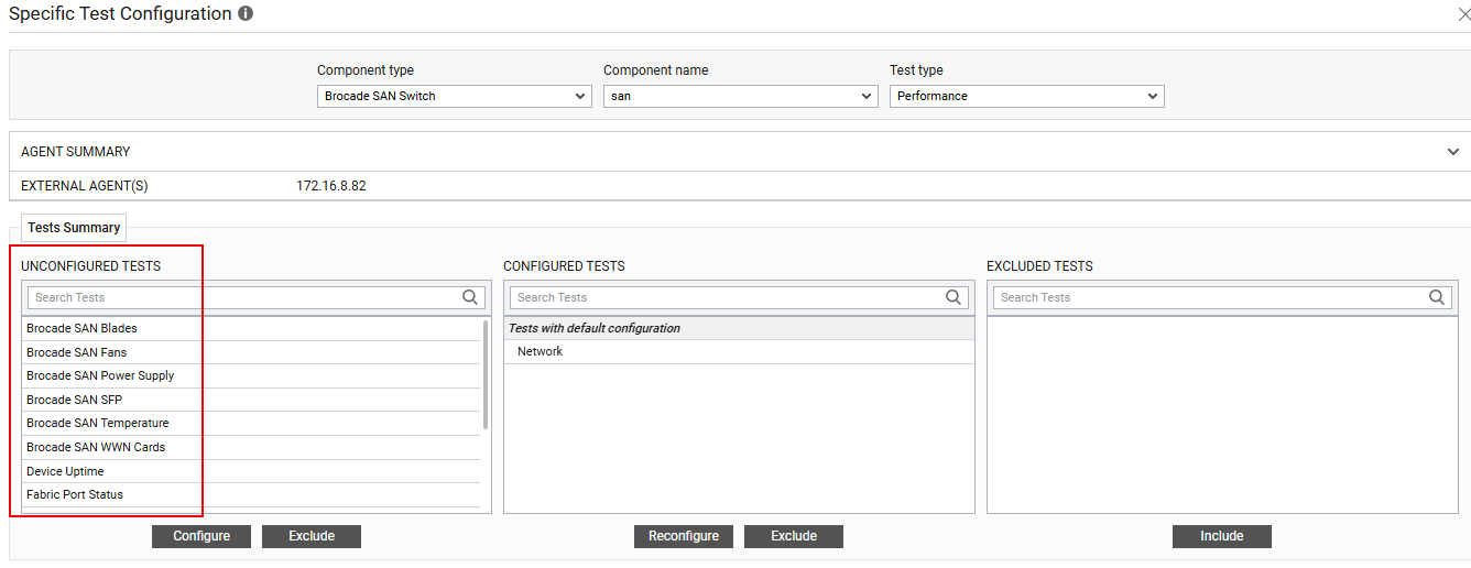 Figure 3 : List of unconfigured tests for Brocade SAN Switch