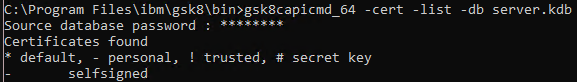 gsk8capicmd_64 -cert -list -db db2Server.kdb