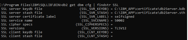 db2 "UPDATE DBM CFG USING SSL_SVR_LABEL selfsigned"