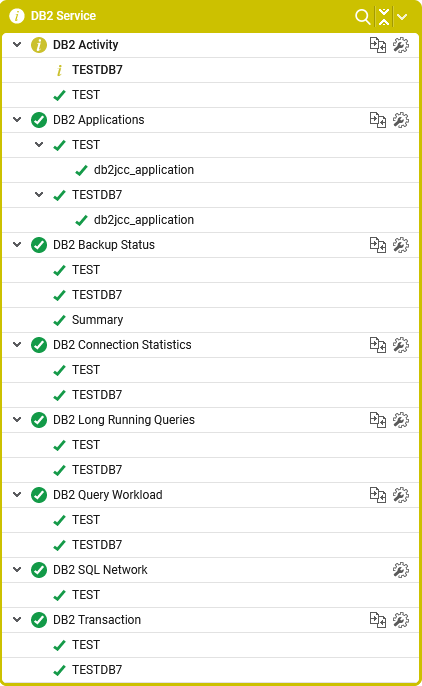 Besides revealing the availability and responsiveness of the DB2 server, the tests associated with the Db2 Service layer indicate the level of SQL activity on the server, and the number and type of transactions that occur on the server. These measurements together serve as effective indicators of the processing ability of the DB2 server.