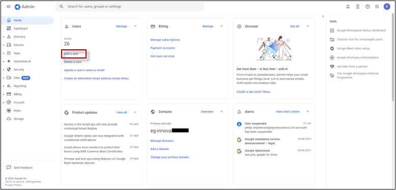 Log in to Google Admin Console using an account that has administrative access to Google Cloud and Google Workspace.