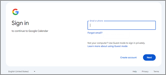 Login to Google Calendar with the credentials of the newly created simulation user.