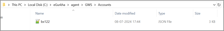Then, copy the downloaded key file to the<eG_INSTALL_DIR>/agent/GWS/Accounts folder. Now, rename the Private key as the Nickname of the Google Workspace Synthetic Monitor component that you manage in eG Enterprise.