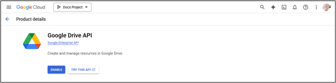 On the Product details page, click on the Enable button to enable the service. Note that the eG agent will be unable to report metrics if the service is not API-enabled in the chosen project.
