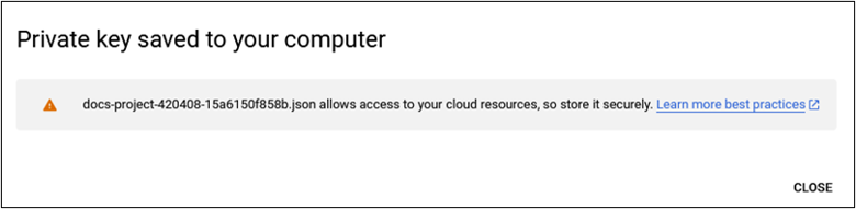 This will generate the private key file in the JSON format for the service account. The key file will be downloaded to your local system automatically as depicted by the following image.