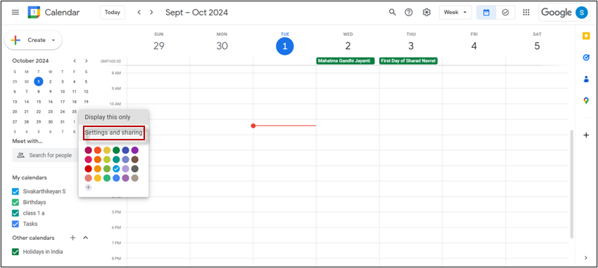 Now, click the Options next to the calendar and select Settings and sharing, as given in Figure 18.