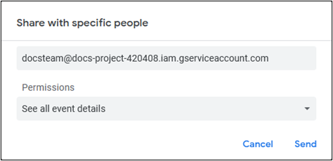 Now, specify the email ID of the Service account to which you wish to share the calendar, and choose the required permission level, as given in Figure 20.