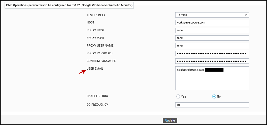Provide the email ID of this user against the USER EMAIL parameter while configuring the tests for the target component using the Specific Test Configuration page as shown below.