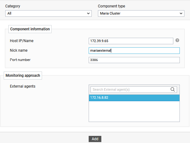 Select an external agent from the External agents list box and click the Add button to add the component for monitoring.