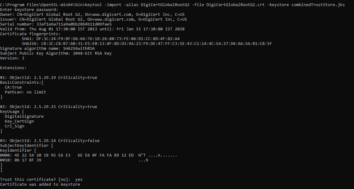 Figure 5 : Importing DigiCertGlobalRootG2.crt into combined truststore