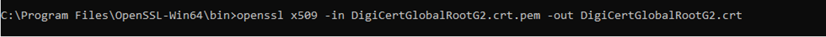 openssl x509 -in DigiCertGlobalRootG2.crt.pem -out DigiCertGlobalRootG2.crt