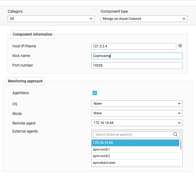 On the other hand, if you are monitoring a Mongo on Azure Cosmos in an agentless manner, then do the following: