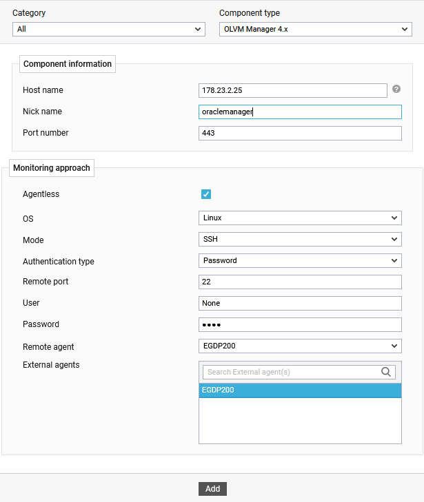 Since OLVM Manager 4.x can be monitored in an Agentless manner alone, the Agentless flag will be enabled by default.
