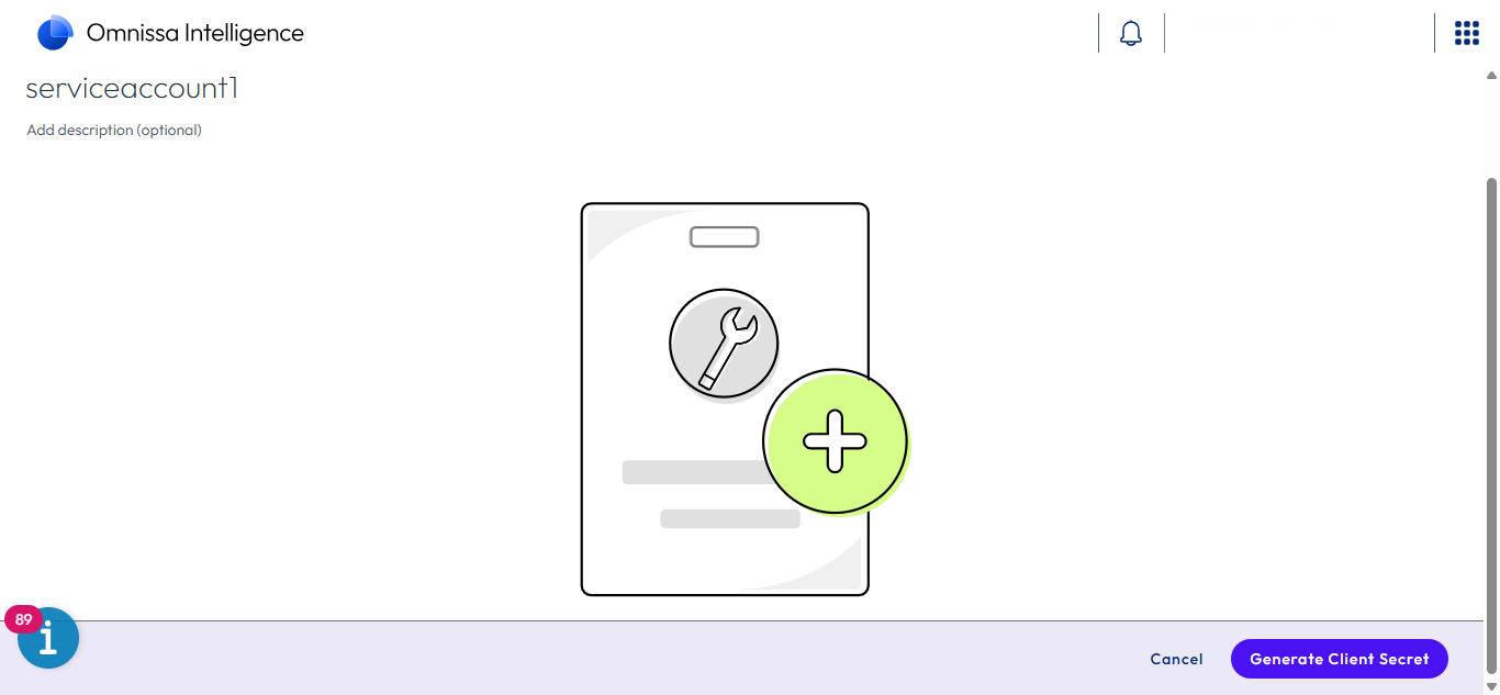 Specify the service name in the Add Service Account page based on the naming conventions (as listed in this page) and then click the Generate Client Secret button (see Figure 5).