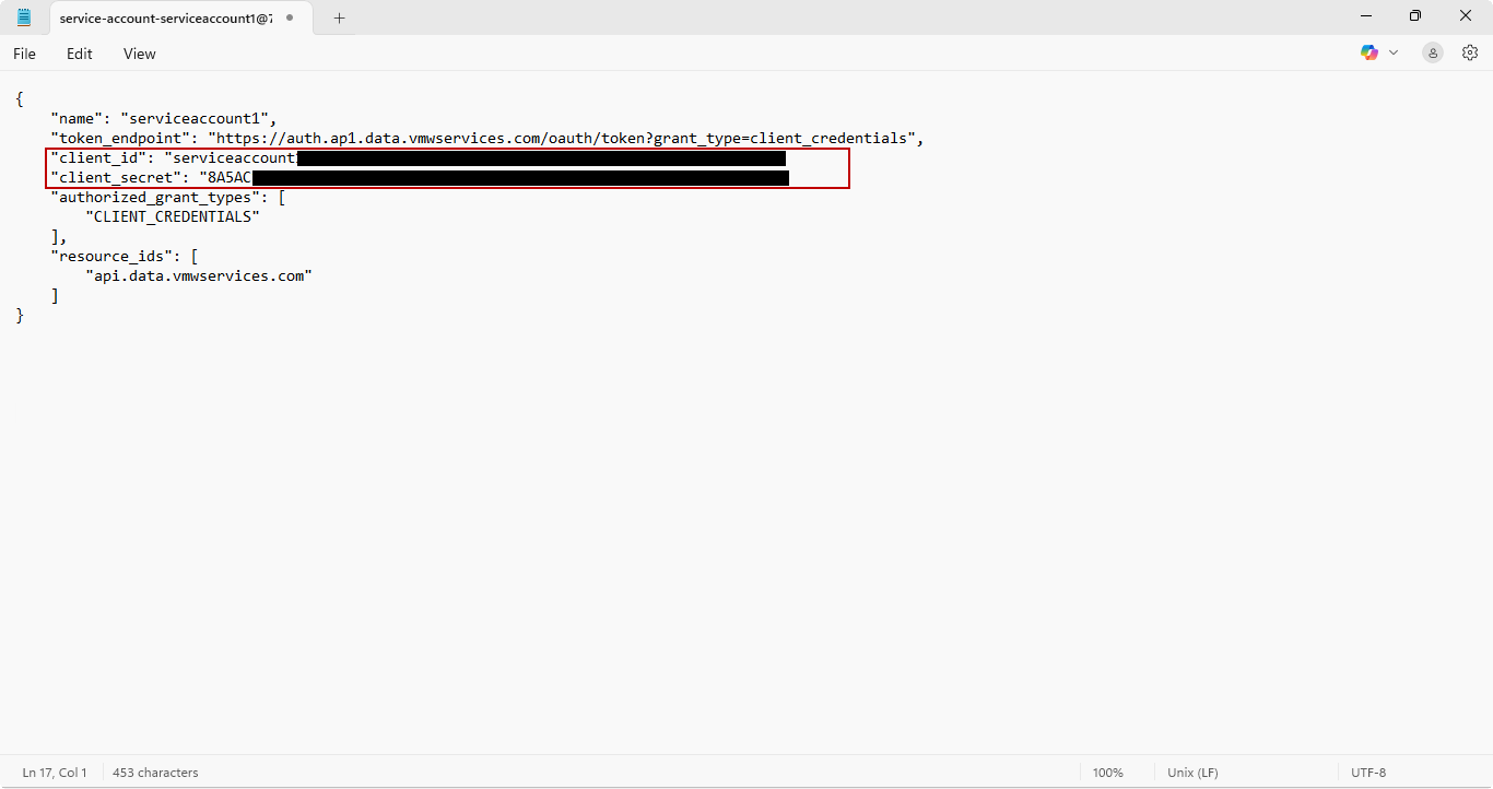The Client ID and Client Secret generated can be viewed in Notepad and they are used as parameters in the Logon test to collect the metrics related to logon (see Figure 7).