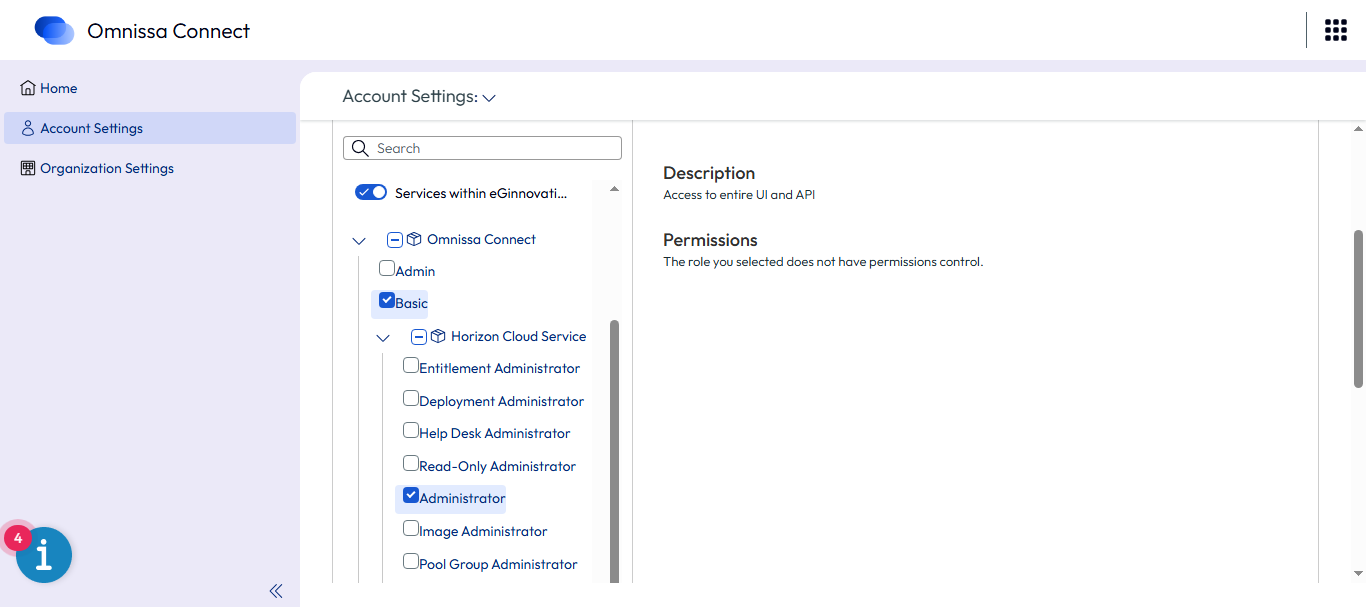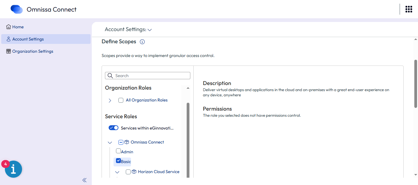 The below steps guide you on how to create a Service Account and generate API Client ID/ API Client Secret in Omnissa console which is a mandatory requirement. This is applicable for Horizon Cloud User Logon test in which API Client ID and API Client Secret serves as parameters.
