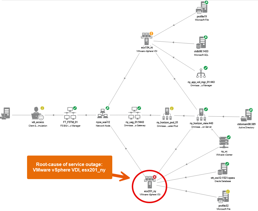 Faster MTTR: By automatically isolating the true cause of degradation, teams spend less time manually chasing symptoms.This reduces the cognitive load on operations teams and helps ensure service continuity and performance for virtual desktops and hosted applications.