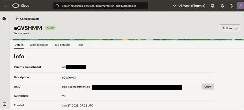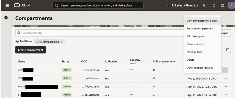 You can now see a list of compartments that have already been added. Click the View Compartment Details options in the menu that pops up to view the details of an existing compartment (see Figure 2).