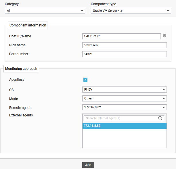 Since Oracle VM Server 4.x can be monitored in an Agentless manner alone, the Agentless flag will be enabled by default.
