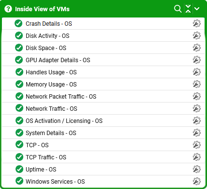 The tests mapped to the Inside View of VMs layer provide an "internal" view of the workings of each of the guests - these tests execute on an Oracle VM Server 4.x but send probes into each of the guest operating systems to analyze how well each guest utilizes the resources that are allocated to it, and how well it handles network traffic and loading.