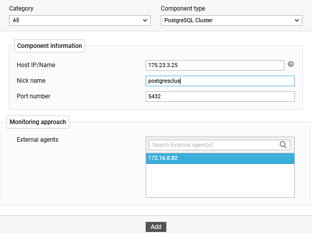 Select an external agent from the External agents list box and click the Add button to add the component for monitoring.