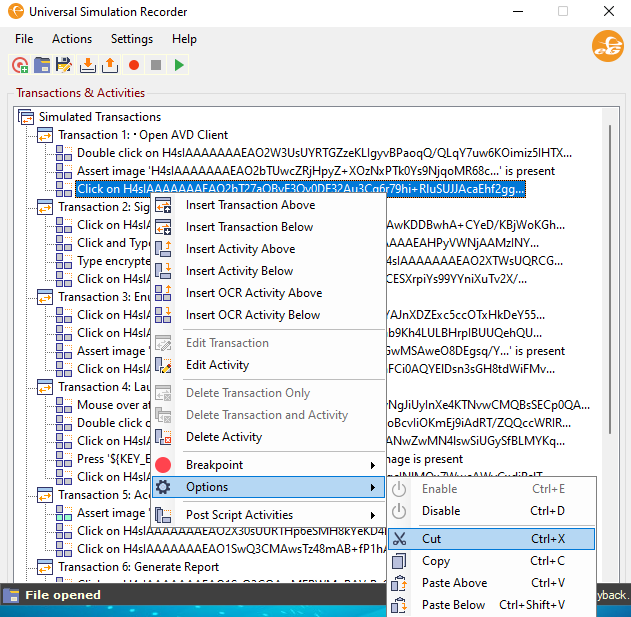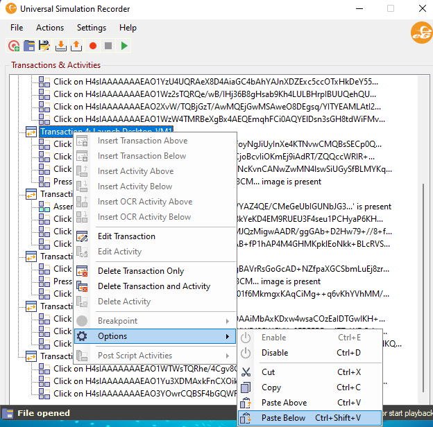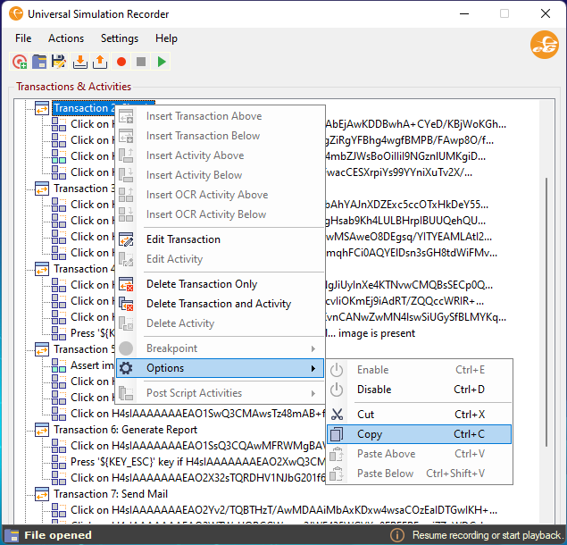 Sometimes, administrators may want to add a recorded user activity/transaction to another transaction without recording the entire script afresh. For this, administrators can right click the user activity/transaction, expand the Options menu and use the Copy option (see Figure 1).