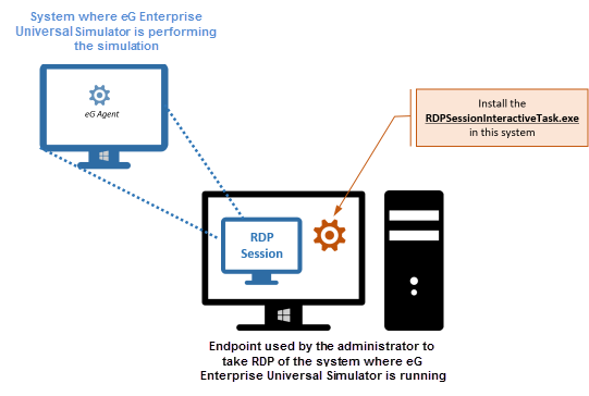 If the universal simulation is performed via an RDP session, then, you can make sure that the simulation is not impacted even if the RDP session window is minimized. For this, execute the RDPSessionInteractiveTask.exe on the system from which the user has launched the RDP session. This executable is available in the <eG_INSTALL_DIR>\lib folder. Once you download and extract the package into any location, you will find the RDPSessionInteractiveTask.exe within.