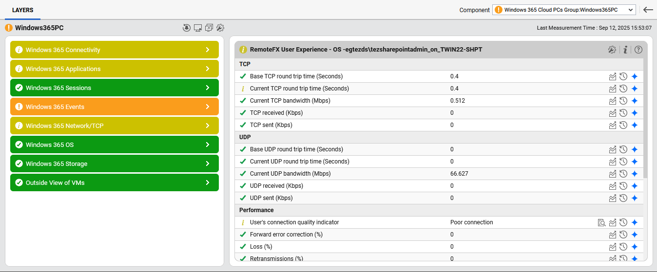 The Windows 365 Network/TCP Layer / Network/TCP Tab