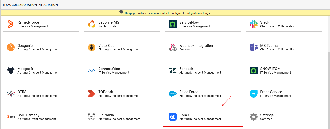 Follow Alerts -> ITSM/Collaboration Integration menu sequence in the Admin tile menu.