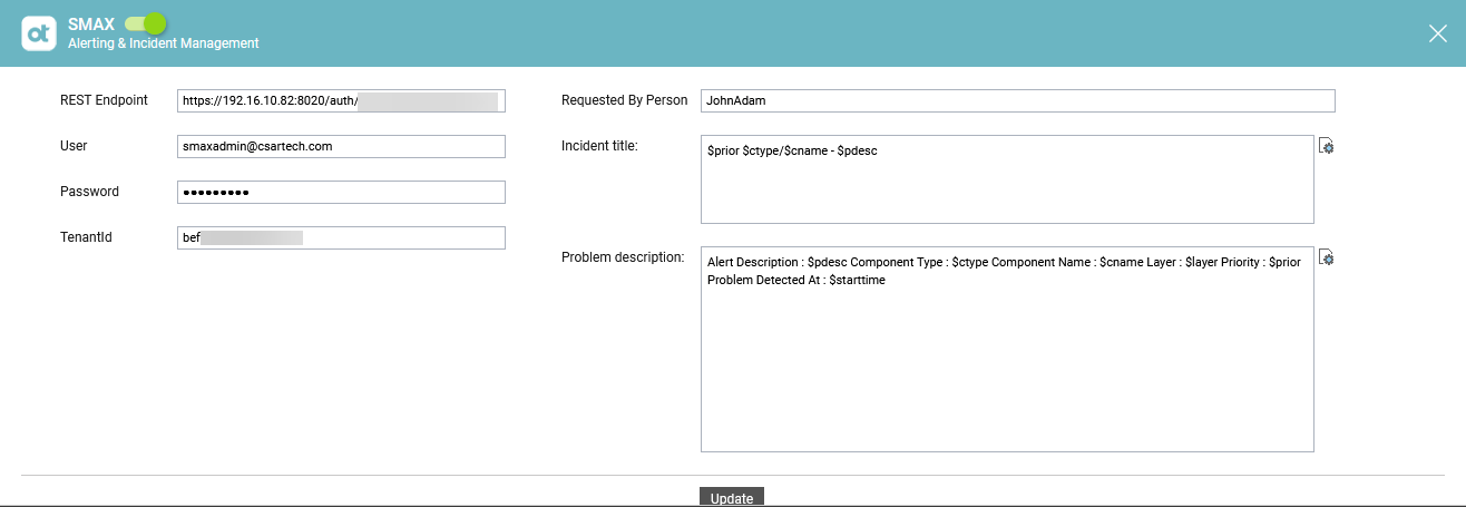 For integration, the SMAX REST API is leveraged. Whenever an eG alert is raised: