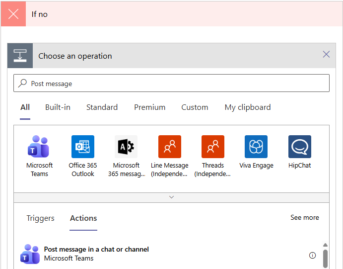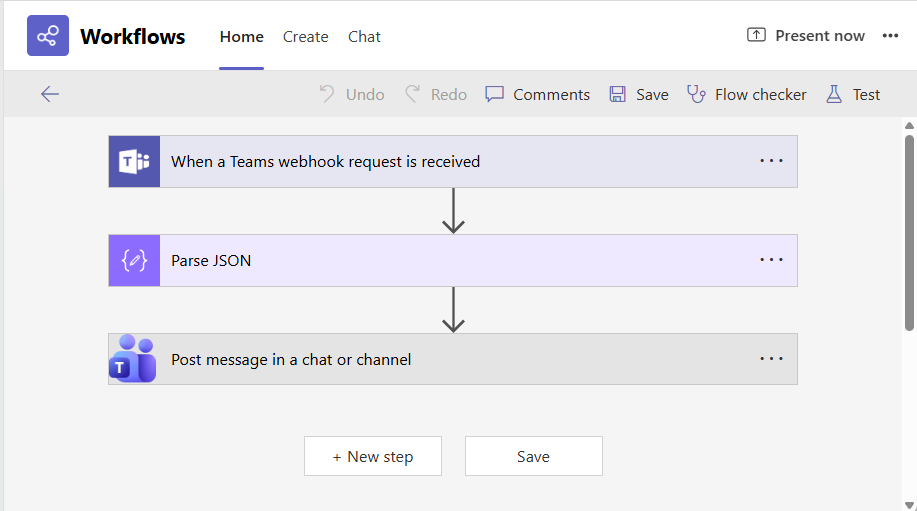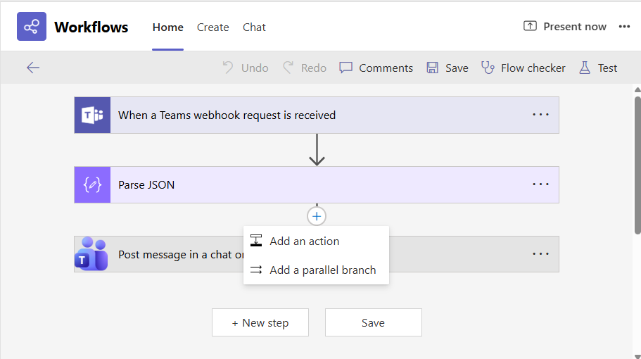 Then, proceed as described by steps 4-7 in Configuring the Workflow to Post Messages to an MS Teams Channel.