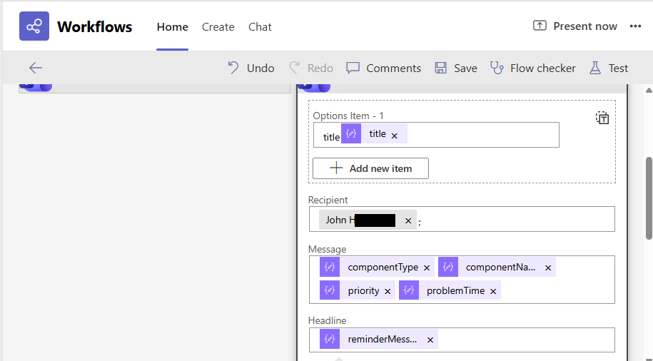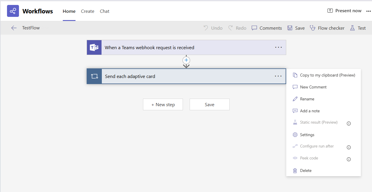 Configuring the Workflow to Post Card to an MS Teams Chat / Channel
