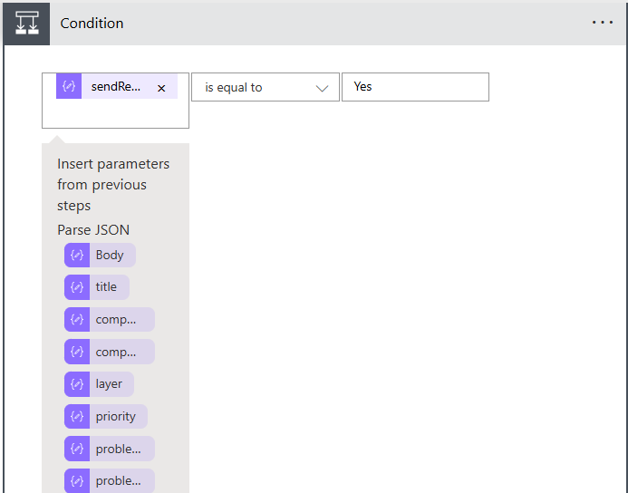 Figure 44 will then appear. The first step to defining a Condition action, is to configure the 'basis' for the condition. In our case, the Condition logic is based on whether/not the sendReminder parameter in the parsed JSON payload is set to Yes/No. In other words, the logic relies on whether/not the Enable Reminder Notification in the eG-MS Teams integration is set to Yes or No. To set this as the 'basis', select sendReminder from the first Choose a value field in Figure 44, pick the is equal to option from the next drop-down, and then enter Yes in the last Choose a value text box (as done in Figure 45).