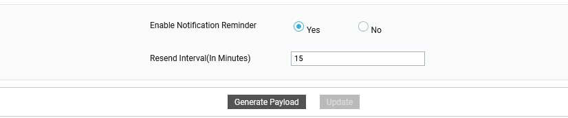 Similarly, if you click on the Generate Payload button after you set the Enable Notification Reminder flag to Yes, then the generated JSON Payload will include two additional parameters, namely - reminderMessage and sendReminder (see Figure 21).