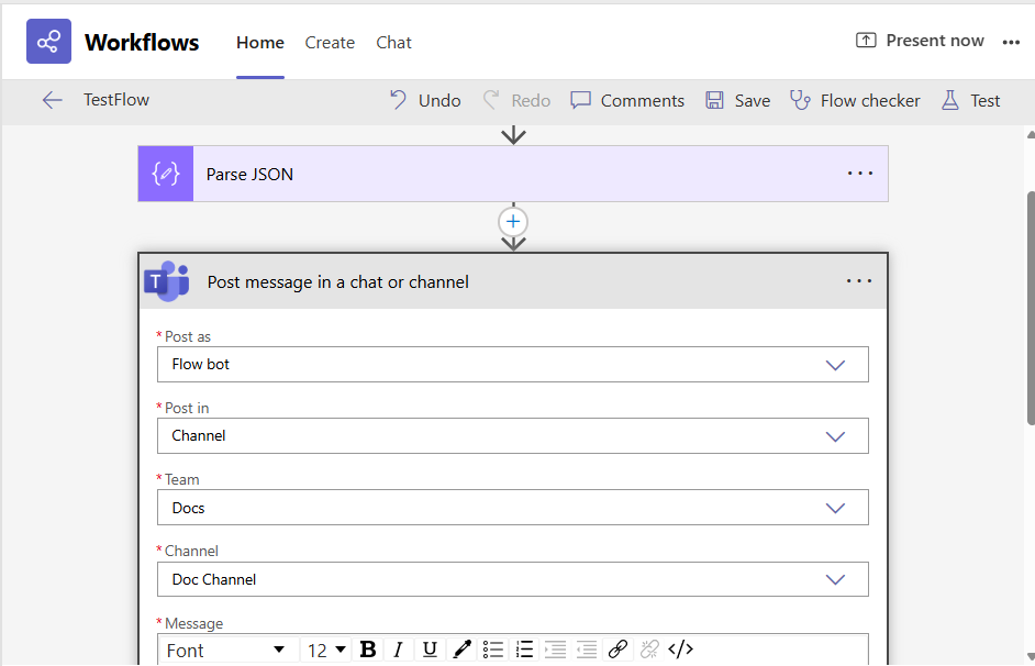 Configuring the Workflow to Post Messages to an MS Teams Channel