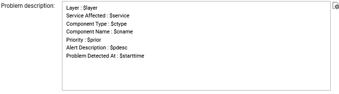 If required, you can override the default Problem description, so it includes additional problem details. For that, click on the$cname