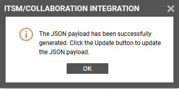 Figure 20 : A message indicating that the JSON payload has been successfully generated
