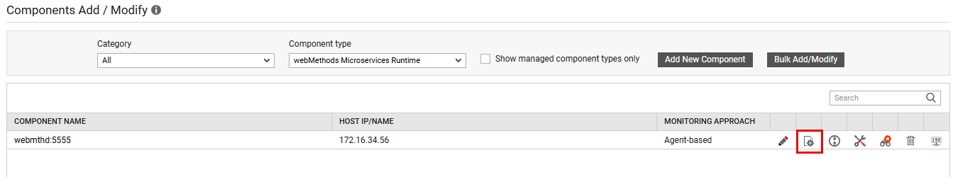 Figure 372 : The Components page listing the newly added webMethods Microservices Runtime component