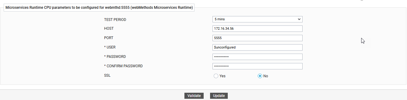 Click the Update button in Figure 374 to update the test configuration. This will automatically configure all the other unconfigured tests for the webMethods Microservices Runtime.