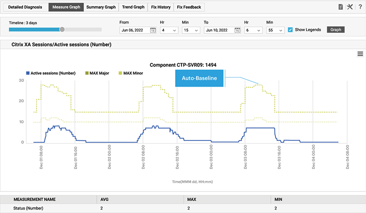 Auto-baselining removes the need to manually tune and tweak metric and alert thresholds. The monitoring system dynamically learns the normal behavior of a system including seasonal or day-by-day / hour-by-hour patterns and adjusts alert thresholds so alerts are raised by anomaly detection. For a comprehensive overview on best practices for metric thresholds and alerting, please see our free whitepaper: White Paper | Make IT Service Monitoring Simple & Proactive with AIOps Powered Intelligent Thresholding & Alerting.