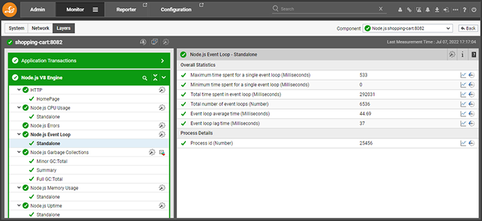 When working with Node.js it is essential to proactively monitor the behavior of the event loop – key metrics to monitor that are associated with the event loop are shown in this screenshot from the eG Enterprise monitoring platform