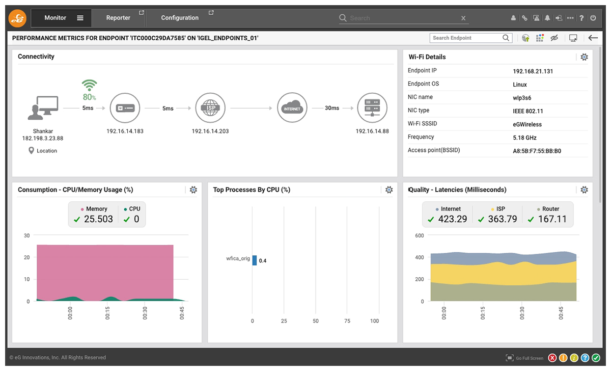 eG Enterprise delivers deep, actionable insight into how employees experience the digital tools and systems they rely on every day. By correlating performance across endpoints, networks, applications, and virtual environments, IT teams gain end-to-end visibility into the true drivers of employee productivity.