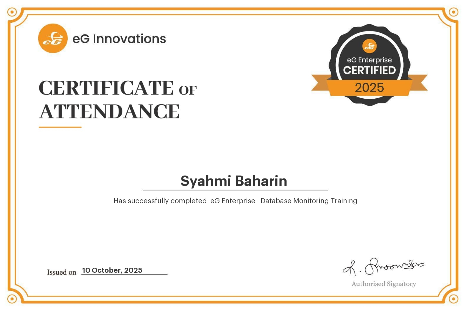 Has successfully attended eG Enterprise Database Monitoring Training